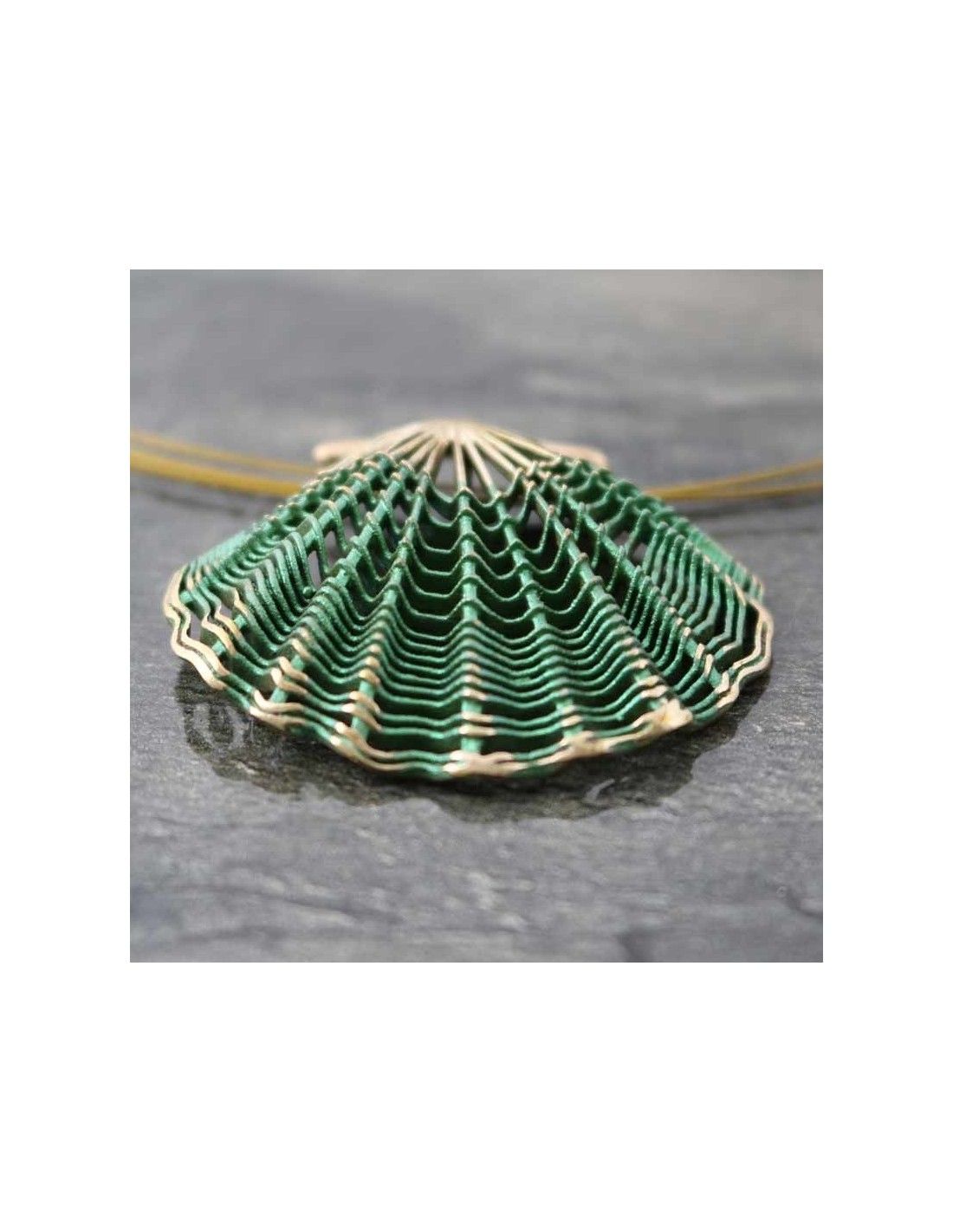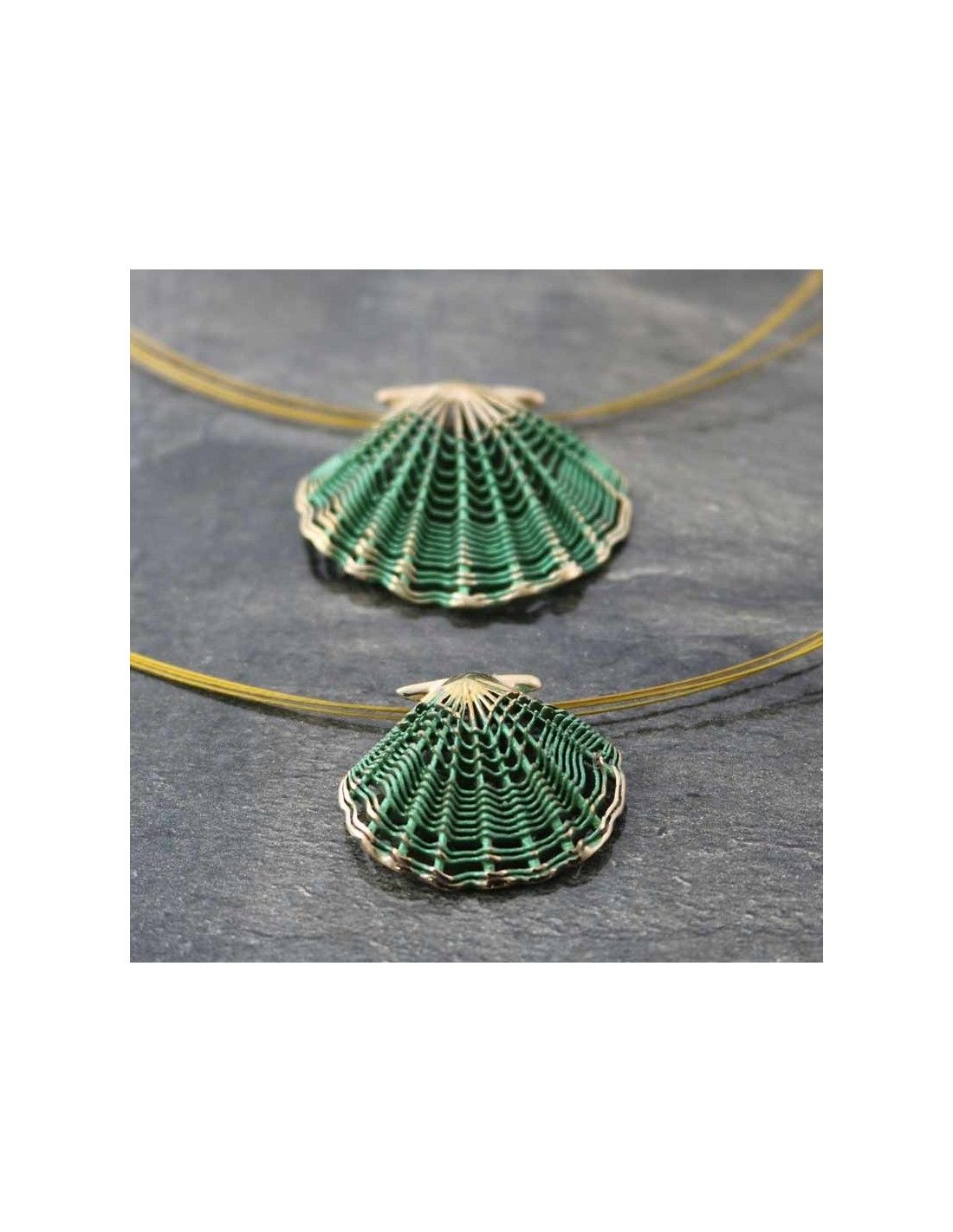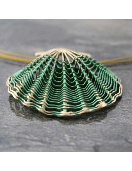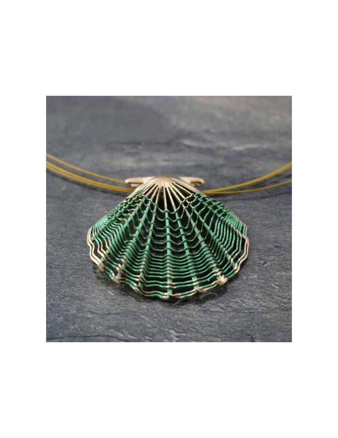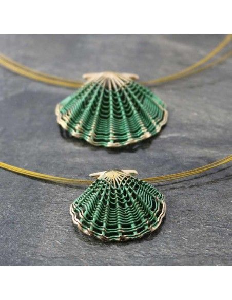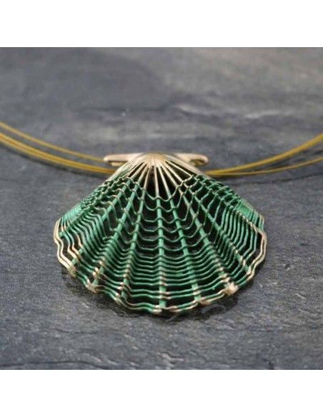 • Colgante realizado en bronce con la concha símbolo de Camino de Santiago en verde.