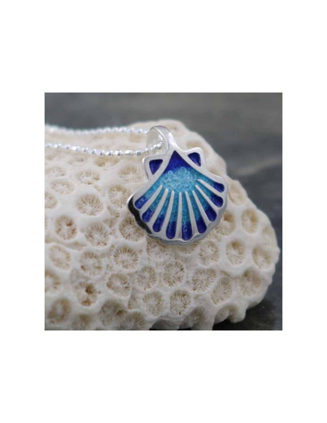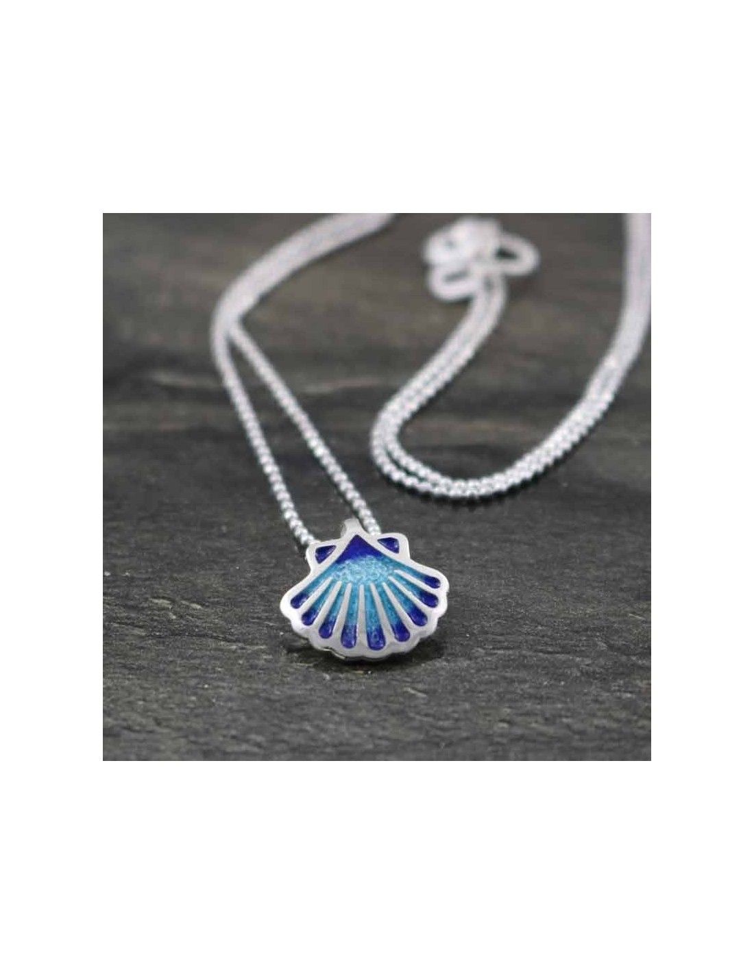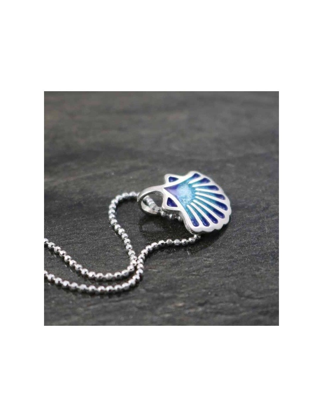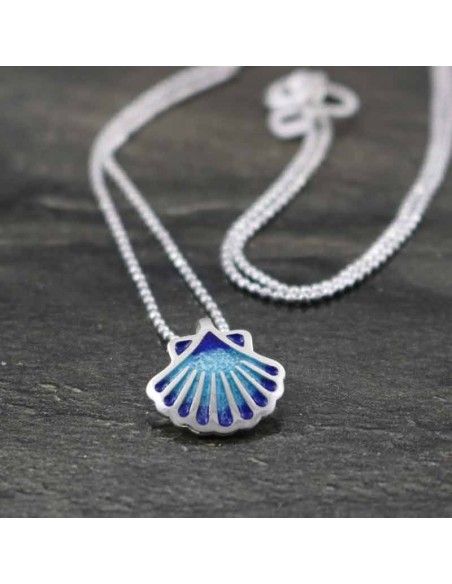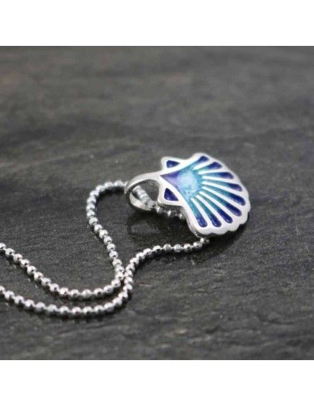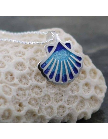 - Colgante realizado en plata de 925mm, con concha esmaltada en tonos azules