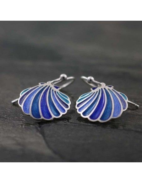 - Pendiente de plata de 925 mm, con concha esmaltada en tonos azules.