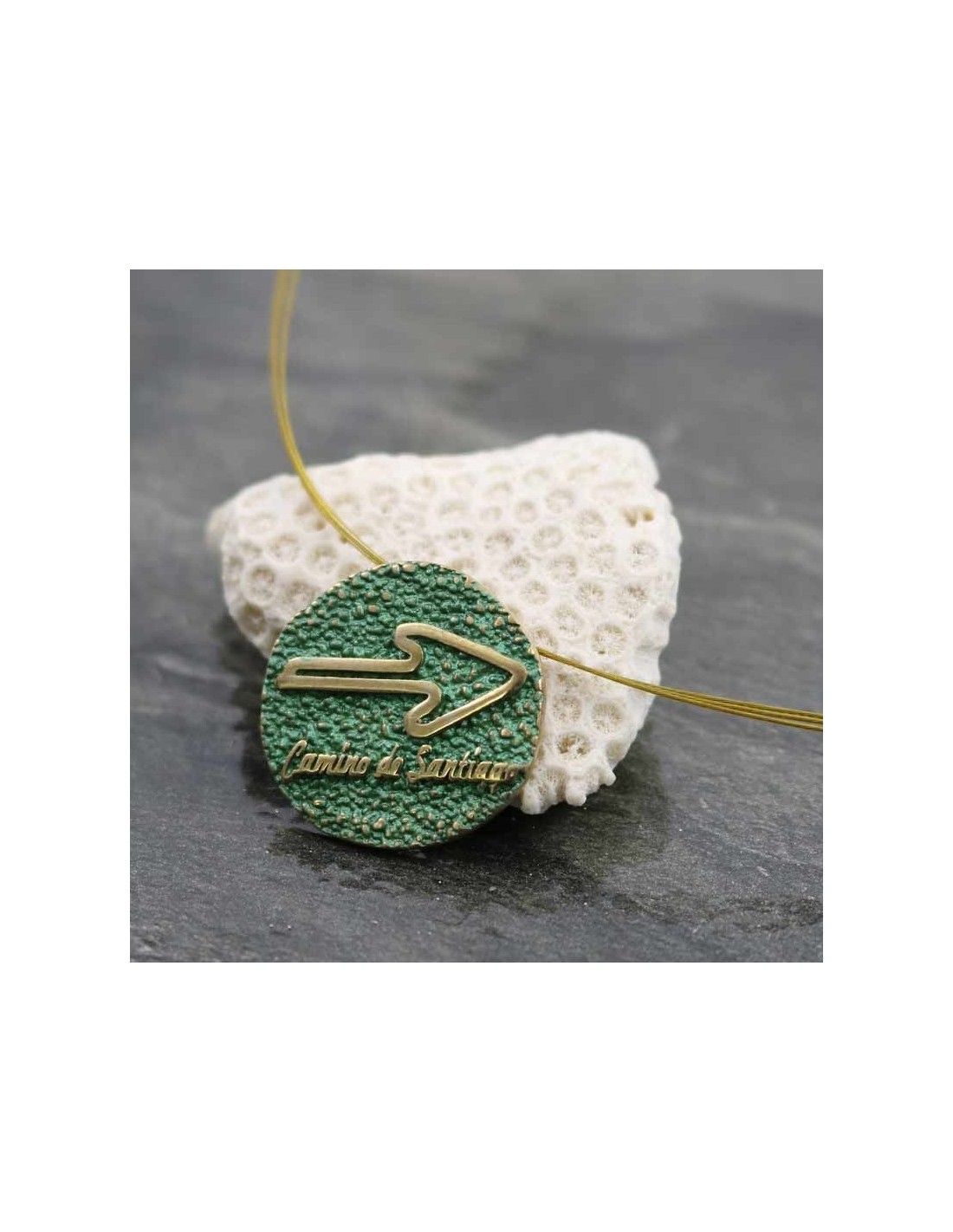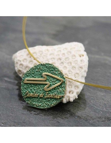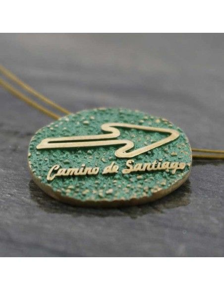 - En relieve aparecen la flecha y la inscripción "Camino de Santiago".