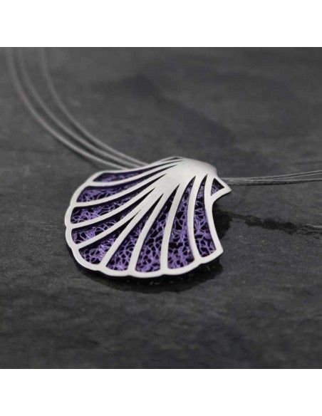 - Colgante realizado en acero con la Concha del Camino de Santiago.