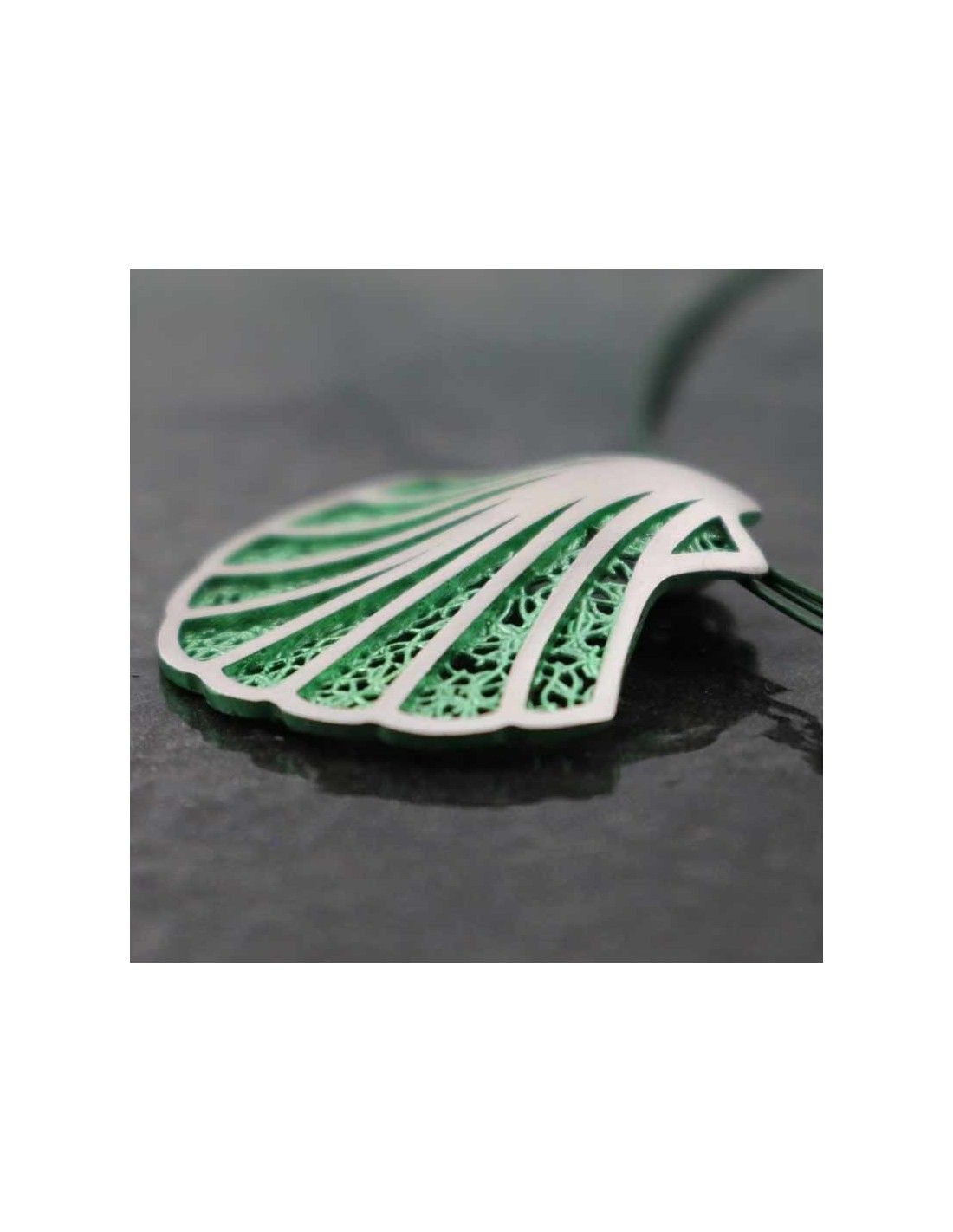 - Colgante realizado en acero con la Concha del Camino de Santiago.